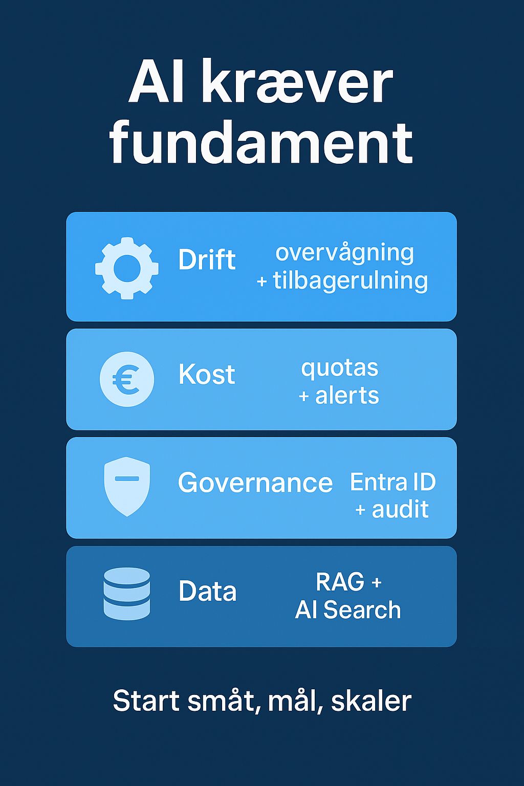 De fleste tænker, at generativ AI skaber værdi fra dag 1. Sandheden er, at uden styr på data, governance og omkostninger bliver regningen højere end gevinsten. Du får effekt, når AI lander på et robust Azure-fundament med sikkerhed og forbrug under kontrol.