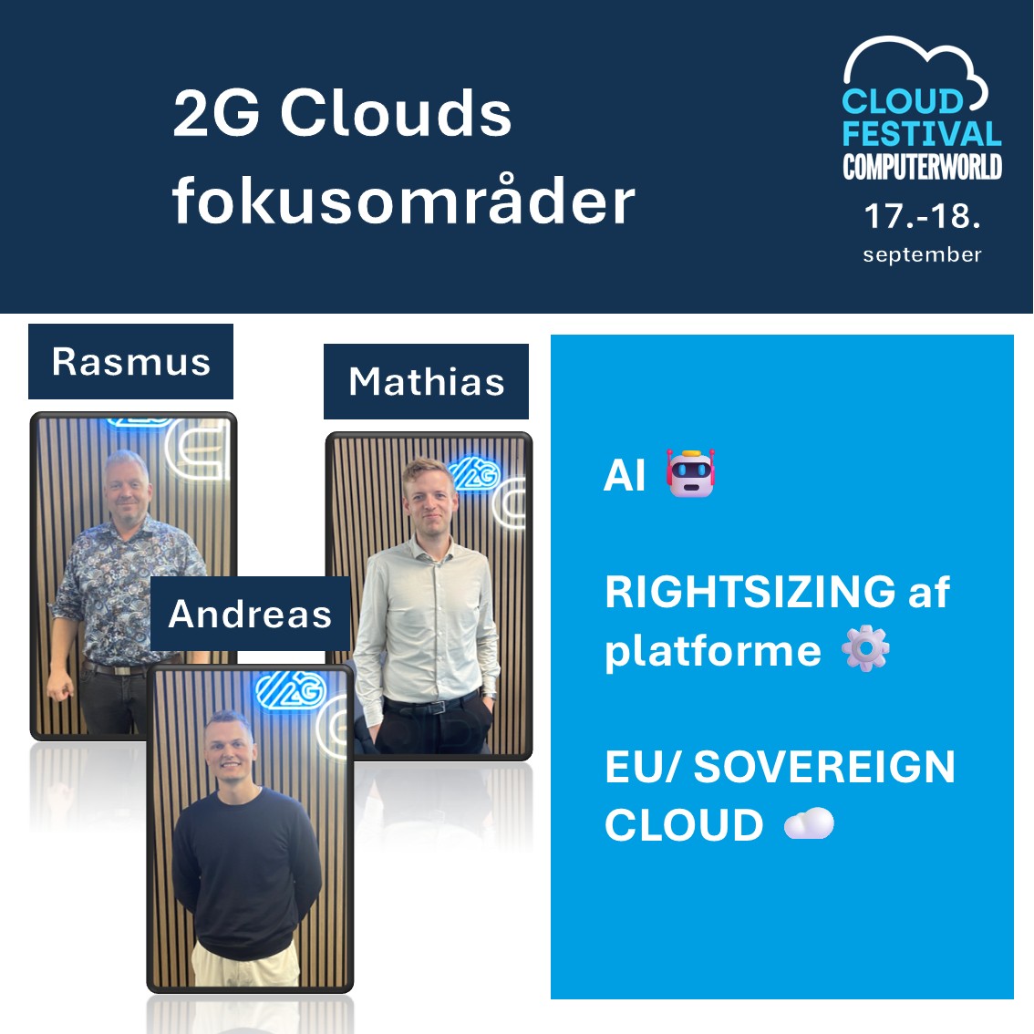 Vi møder op med tre klare temaer: 1. AI, med governance, data og sikkerhed på plads 🔐 2. RIGHTSIZING af platforme på tværs af on-prem, hybrid og public ⚙️ 3. EU/ SOVEREIGN CLOUD i praksis – fra politik til patterns i Azure ☁️